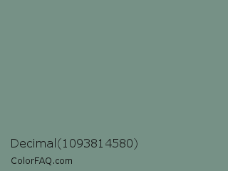 Decimal 1093814580 Color is a normal green color and the nearest color is Blue Smoke #748881. Hex code #769186 and RGB value is rgb(118,145,134). In RGB color space, this color is composed of 46% red, 57% green, 53% blue, In CMYK color space, this color is composed of 19% cyan, 0% magenta, 8% yellow , 43% black , In HSL color space, this color has a hue angle of 156° , 11% saturation and 52% lightness.