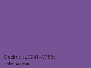Decimal 1094140758 Color is a normal purple color and the nearest color is Dark Lavender #734f96. Hex code #775294 and RGB value is rgb(119,82,148). In RGB color space, this color is composed of 47% red, 32% green, 58% blue, In CMYK color space, this color is composed of 20% cyan, 45% magenta, 0% yellow , 42% black , In HSL color space, this color has a hue angle of 274° , 29% saturation and 45% lightness.