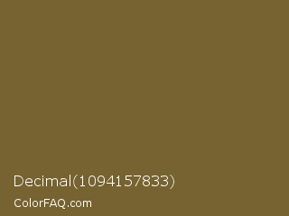 Decimal 1094157833 Color is a normal orange color and the nearest color is Yellow Metal #716338. Hex code #776331 and RGB value is rgb(119,99,49). In RGB color space, this color is composed of 47% red, 39% green, 19% blue, In CMYK color space, this color is composed of 0% cyan, 17% magenta, 59% yellow , 53% black , In HSL color space, this color has a hue angle of 43° , 42% saturation and 33% lightness.