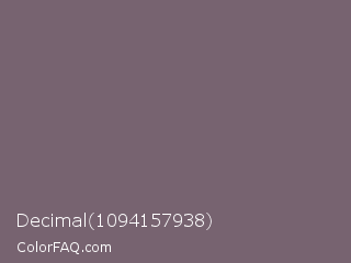 Decimal 1094157938 Color is a normal magenta color and the nearest color is Falcon #7f626d. Hex code #776370 and RGB value is rgb(119,99,112). In RGB color space, this color is composed of 47% red, 39% green, 44% blue, In CMYK color space, this color is composed of 0% cyan, 17% magenta, 6% yellow , 53% black , In HSL color space, this color has a hue angle of 321° , 9% saturation and 43% lightness.