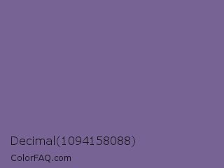 Decimal 1094158088 Color is a normal violet color and the nearest color is Rum #796989. Hex code #776394 and RGB value is rgb(119,99,148). In RGB color space, this color is composed of 47% red, 39% green, 58% blue, In CMYK color space, this color is composed of 20% cyan, 33% magenta, 0% yellow , 42% black , In HSL color space, this color has a hue angle of 264° , 20% saturation and 48% lightness.