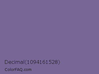 Decimal 1094161528 Color is a normal violet color and the nearest color is Kimberly #736c9f. Hex code #776696 and RGB value is rgb(119,102,150). In RGB color space, this color is composed of 47% red, 40% green, 59% blue, In CMYK color space, this color is composed of 21% cyan, 32% magenta, 0% yellow , 41% black , In HSL color space, this color has a hue angle of 261° , 19% saturation and 49% lightness.
