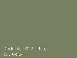 Decimal 1094214455 Color is a normal lime color and the nearest color is Limed Ash #747d63. Hex code #778161 and RGB value is rgb(119,129,97). In RGB color space, this color is composed of 47% red, 51% green, 38% blue, In CMYK color space, this color is composed of 8% cyan, 0% magenta, 25% yellow , 49% black , In HSL color space, this color has a hue angle of 79° , 14% saturation and 44% lightness.