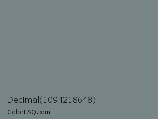 Decimal 1094218648 Color is a normal cyan color and the nearest color is Blue Smoke #748881. Hex code #778586 and RGB value is rgb(119,133,134). In RGB color space, this color is composed of 47% red, 52% green, 53% blue, In CMYK color space, this color is composed of 11% cyan, 1% magenta, 0% yellow , 47% black , In HSL color space, this color has a hue angle of 184° , 6% saturation and 50% lightness.