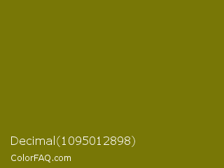 Decimal 1095012898 Color is a dark yellow color and the nearest color is Bronze Yellow #737000. Hex code #787706 and RGB value is rgb(120,119,6). In RGB color space, this color is composed of 47% red, 47% green, 2% blue, In CMYK color space, this color is composed of 0% cyan, 1% magenta, 95% yellow , 53% black , In HSL color space, this color has a hue angle of 59° , 90% saturation and 25% lightness.