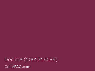 Decimal 1095319689 Color is a normal rose color and the nearest color is Pansy Purple #78184a. Hex code #792649 and RGB value is rgb(121,38,73). In RGB color space, this color is composed of 47% red, 15% green, 29% blue, In CMYK color space, this color is composed of 0% cyan, 69% magenta, 40% yellow , 53% black , In HSL color space, this color has a hue angle of 335° , 52% saturation and 31% lightness.