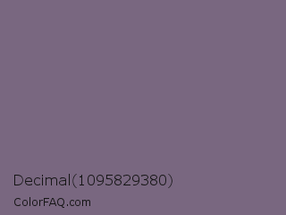 Decimal 1095829380 Color is a normal purple color and the nearest color is Old Lavender #796878. Hex code #796780 and RGB value is rgb(121,103,128). In RGB color space, this color is composed of 47% red, 40% green, 50% blue, In CMYK color space, this color is composed of 5% cyan, 20% magenta, 0% yellow , 50% black , In HSL color space, this color has a hue angle of 283° , 11% saturation and 45% lightness.