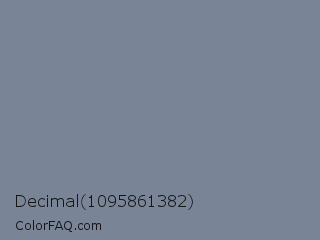 Decimal 1095861382 Color is a normal blue color and the nearest color is Light Slate Gray #778899. Hex code #798596 and RGB value is rgb(121,133,150). In RGB color space, this color is composed of 47% red, 52% green, 59% blue, In CMYK color space, this color is composed of 19% cyan, 11% magenta, 0% yellow , 41% black , In HSL color space, this color has a hue angle of 215° , 12% saturation and 53% lightness.