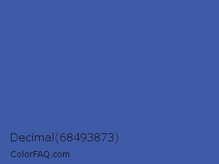 Decimal 68493873 Color is a normal blue color and the nearest color is Azure #315ba1. Hex code #3f5ba7 and RGB value is rgb(63,91,167). In RGB color space, this color is composed of 25% red, 36% green, 65% blue, In CMYK color space, this color is composed of 62% cyan, 46% magenta, 0% yellow , 35% black , In HSL color space, this color has a hue angle of 224° , 45% saturation and 45% lightness.