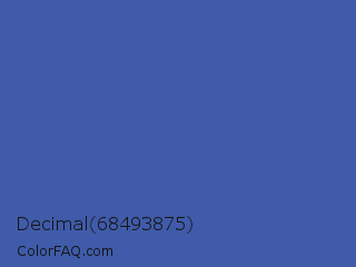 Decimal 68493875 Color is a normal blue color and the nearest color is Azure #315ba1. Hex code #3f5ba9 and RGB value is rgb(63,91,169). In RGB color space, this color is composed of 25% red, 36% green, 66% blue, In CMYK color space, this color is composed of 63% cyan, 46% magenta, 0% yellow , 34% black , In HSL color space, this color has a hue angle of 224° , 46% saturation and 45% lightness.