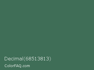 Decimal 68513813 Color is a normal green color and the nearest color is Amazon #3b7a57. Hex code #3f6e57 and RGB value is rgb(63,110,87). In RGB color space, this color is composed of 25% red, 43% green, 34% blue, In CMYK color space, this color is composed of 43% cyan, 0% magenta, 21% yellow , 57% black , In HSL color space, this color has a hue angle of 151° , 27% saturation and 34% lightness.