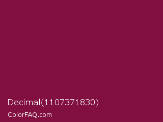 Decimal 1107371830 Color is a dark rose color and the nearest color is Rose Bud Cherry #800b47. Hex code #811040 and RGB value is rgb(129,16,64). In RGB color space, this color is composed of 51% red, 6% green, 25% blue, In CMYK color space, this color is composed of 0% cyan, 88% magenta, 50% yellow , 49% black , In HSL color space, this color has a hue angle of 335° , 78% saturation and 28% lightness.