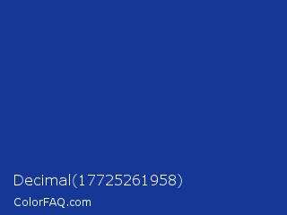 Decimal 17725261958 Color is a normal blue color and the nearest color is Torea Bay #0f2d9e. Hex code #153796 and RGB value is rgb(21,55,150). In RGB color space, this color is composed of 8% red, 22% green, 59% blue, In CMYK color space, this color is composed of 86% cyan, 63% magenta, 0% yellow , 41% black , In HSL color space, this color has a hue angle of 224° , 75% saturation and 34% lightness.