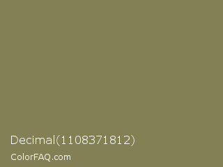 Decimal 1108371812 Color is a normal yellow color and the nearest color is Gold Fusion #85754e. Hex code #828054 and RGB value is rgb(130,128,84). In RGB color space, this color is composed of 51% red, 50% green, 33% blue, In CMYK color space, this color is composed of 0% cyan, 2% magenta, 35% yellow , 49% black , In HSL color space, this color has a hue angle of 57° , 21% saturation and 42% lightness.