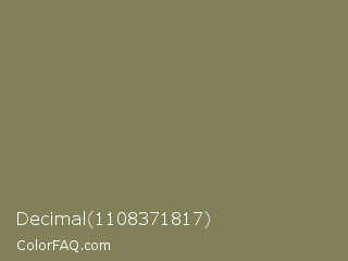 Decimal 1108371817 Color is a normal yellow color and the nearest color is Clay Creek #8a8360. Hex code #828059 and RGB value is rgb(130,128,89). In RGB color space, this color is composed of 51% red, 50% green, 35% blue, In CMYK color space, this color is composed of 0% cyan, 2% magenta, 32% yellow , 49% black , In HSL color space, this color has a hue angle of 57° , 19% saturation and 43% lightness.