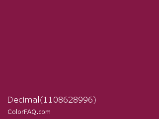 Decimal 1108628996 Color is a dark rose color and the nearest color is Pansy Purple #78184a. Hex code #831744 and RGB value is rgb(131,23,68). In RGB color space, this color is composed of 51% red, 9% green, 27% blue, In CMYK color space, this color is composed of 0% cyan, 82% magenta, 48% yellow , 49% black , In HSL color space, this color has a hue angle of 335° , 70% saturation and 30% lightness.