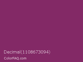 Decimal 1108673094 Color is a normal magenta color and the nearest color is Boysenberry #873260. Hex code #832966 and RGB value is rgb(131,41,102). In RGB color space, this color is composed of 51% red, 16% green, 40% blue, In CMYK color space, this color is composed of 0% cyan, 69% magenta, 22% yellow , 49% black , In HSL color space, this color has a hue angle of 319° , 52% saturation and 34% lightness.