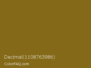 Decimal 1108763986 Color is a dark orange color and the nearest color is Kumera #886221. Hex code #836918 and RGB value is rgb(131,105,24). In RGB color space, this color is composed of 51% red, 41% green, 9% blue, In CMYK color space, this color is composed of 0% cyan, 20% magenta, 82% yellow , 49% black , In HSL color space, this color has a hue angle of 45° , 69% saturation and 30% lightness.