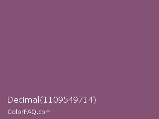 Decimal 1109549714 Color is a normal magenta color and the nearest color is Sugar Plum #914e75. Hex code #845274 and RGB value is rgb(132,82,116). In RGB color space, this color is composed of 52% red, 32% green, 45% blue, In CMYK color space, this color is composed of 0% cyan, 38% magenta, 12% yellow , 48% black , In HSL color space, this color has a hue angle of 319° , 23% saturation and 42% lightness.