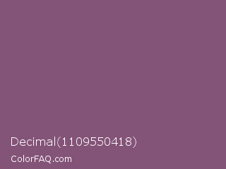 Decimal 1109550418 Color is a normal magenta color and the nearest color is Sugar Plum #914e75. Hex code #845378 and RGB value is rgb(132,83,120). In RGB color space, this color is composed of 52% red, 33% green, 47% blue, In CMYK color space, this color is composed of 0% cyan, 37% magenta, 9% yellow , 48% black , In HSL color space, this color has a hue angle of 315° , 23% saturation and 42% lightness.