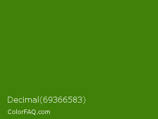 Decimal 69366583 Color is a dark green color and the nearest color is La Palma #368716. Hex code #408109 and RGB value is rgb(64,129,9). In RGB color space, this color is composed of 25% red, 51% green, 4% blue, In CMYK color space, this color is composed of 50% cyan, 0% magenta, 93% yellow , 49% black , In HSL color space, this color has a hue angle of 93° , 87% saturation and 27% lightness.