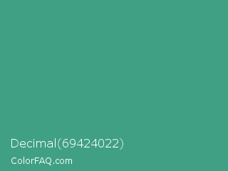 Decimal 69424022 Color is a normal green color and the nearest color is Zomp #39a78e. Hex code #40a084 and RGB value is rgb(64,160,132). In RGB color space, this color is composed of 25% red, 63% green, 52% blue, In CMYK color space, this color is composed of 60% cyan, 0% magenta, 18% yellow , 37% black , In HSL color space, this color has a hue angle of 163° , 43% saturation and 44% lightness.