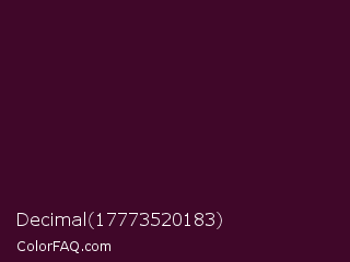 Decimal 17773520183 Color is a very dark magenta color and the nearest color is Barossa #44012d. Hex code #400729 and RGB value is rgb(64,7,41). In RGB color space, this color is composed of 25% red, 3% green, 16% blue, In CMYK color space, this color is composed of 0% cyan, 89% magenta, 36% yellow , 75% black , In HSL color space, this color has a hue angle of 324° , 80% saturation and 14% lightness.