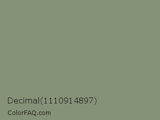 Decimal 1110914897 Color is a normal green color and the nearest color is Battleship Gray #828f72. Hex code #869277 and RGB value is rgb(134,146,119). In RGB color space, this color is composed of 53% red, 57% green, 47% blue, In CMYK color space, this color is composed of 8% cyan, 0% magenta, 18% yellow , 43% black , In HSL color space, this color has a hue angle of 87° , 11% saturation and 52% lightness.