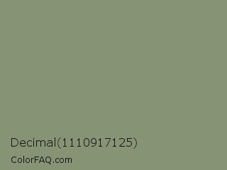 Decimal 1110917125 Color is a normal green color and the nearest color is Battleship Gray #828f72. Hex code #869375 and RGB value is rgb(134,147,117). In RGB color space, this color is composed of 53% red, 58% green, 46% blue, In CMYK color space, this color is composed of 9% cyan, 0% magenta, 20% yellow , 42% black , In HSL color space, this color has a hue angle of 86° , 12% saturation and 52% lightness.