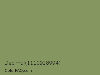 Decimal 1110918994 Color is a normal lime color and the nearest color is Moss Green #8a9a5b. Hex code #869660 and RGB value is rgb(134,150,96). In RGB color space, this color is composed of 53% red, 59% green, 38% blue, In CMYK color space, this color is composed of 11% cyan, 0% magenta, 36% yellow , 41% black , In HSL color space, this color has a hue angle of 78° , 22% saturation and 48% lightness.