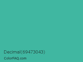 Decimal 69473043 Color is a normal cyan color and the nearest color is Keppel #3ab09e. Hex code #40b7a1 and RGB value is rgb(64,183,161). In RGB color space, this color is composed of 25% red, 72% green, 63% blue, In CMYK color space, this color is composed of 65% cyan, 0% magenta, 12% yellow , 28% black , In HSL color space, this color has a hue angle of 169° , 48% saturation and 48% lightness.