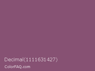 Decimal 1111631427 Color is a normal magenta color and the nearest color is Sugar Plum #914e75. Hex code #875173 and RGB value is rgb(135,81,115). In RGB color space, this color is composed of 53% red, 32% green, 45% blue, In CMYK color space, this color is composed of 0% cyan, 40% magenta, 15% yellow , 47% black , In HSL color space, this color has a hue angle of 322° , 25% saturation and 42% lightness.