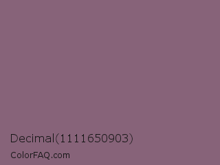 Decimal 1111650903 Color is a normal magenta color and the nearest color is Falcon #7f626d. Hex code #876379 and RGB value is rgb(135,99,121). In RGB color space, this color is composed of 53% red, 39% green, 47% blue, In CMYK color space, this color is composed of 0% cyan, 27% magenta, 10% yellow , 47% black , In HSL color space, this color has a hue angle of 323° , 15% saturation and 46% lightness.