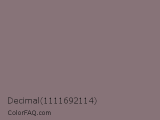 Decimal 1111692114 Color is a normal red color and the nearest color is Empress #817377. Hex code #877378 and RGB value is rgb(135,115,120). In RGB color space, this color is composed of 53% red, 45% green, 47% blue, In CMYK color space, this color is composed of 0% cyan, 15% magenta, 11% yellow , 47% black , In HSL color space, this color has a hue angle of 345° , 8% saturation and 49% lightness.
