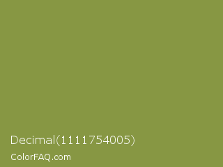 Decimal 1111754005 Color is a normal lime color and the nearest color is Sycamore #908d39. Hex code #879743 and RGB value is rgb(135,151,67). In RGB color space, this color is composed of 53% red, 59% green, 26% blue, In CMYK color space, this color is composed of 11% cyan, 0% magenta, 56% yellow , 41% black , In HSL color space, this color has a hue angle of 71° , 39% saturation and 43% lightness.