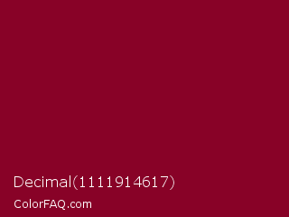 Decimal 1111914617 Color is a dark rose color and the nearest color is Paprika #8d0226. Hex code #880227 and RGB value is rgb(136,2,39). In RGB color space, this color is composed of 53% red, 1% green, 15% blue, In CMYK color space, this color is composed of 0% cyan, 99% magenta, 71% yellow , 47% black , In HSL color space, this color has a hue angle of 343° , 97% saturation and 27% lightness.