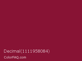 Decimal 1111958084 Color is a dark rose color and the nearest color is Claret #7f1734. Hex code #881334 and RGB value is rgb(136,19,52). In RGB color space, this color is composed of 53% red, 7% green, 20% blue, In CMYK color space, this color is composed of 0% cyan, 86% magenta, 62% yellow , 47% black , In HSL color space, this color has a hue angle of 343° , 75% saturation and 30% lightness.