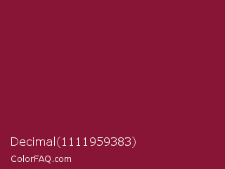 Decimal 1111959383 Color is a normal rose color and the nearest color is Claret #7f1734. Hex code #881535 and RGB value is rgb(136,21,53). In RGB color space, this color is composed of 53% red, 8% green, 21% blue, In CMYK color space, this color is composed of 0% cyan, 85% magenta, 61% yellow , 47% black , In HSL color space, this color has a hue angle of 343° , 73% saturation and 31% lightness.