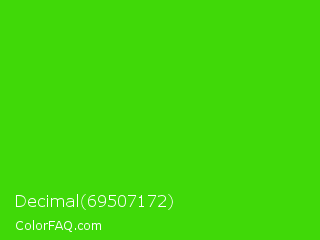 Decimal 69507172 Color is a normal green color and the nearest color is Harlequin Green #46cb18. Hex code #40d908 and RGB value is rgb(64,217,8). In RGB color space, this color is composed of 25% red, 85% green, 3% blue, In CMYK color space, this color is composed of 71% cyan, 0% magenta, 96% yellow , 15% black , In HSL color space, this color has a hue angle of 104° , 93% saturation and 44% lightness.