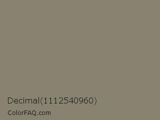 Decimal 1112540960 Color is a normal orange color and the nearest color is Bandicoot #858470. Hex code #888270 and RGB value is rgb(136,130,112). In RGB color space, this color is composed of 53% red, 51% green, 44% blue, In CMYK color space, this color is composed of 0% cyan, 4% magenta, 18% yellow , 47% black , In HSL color space, this color has a hue angle of 45° , 10% saturation and 49% lightness.