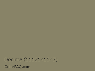 Decimal 1112541543 Color is a normal yellow color and the nearest color is Clay Creek #8a8360. Hex code #888367 and RGB value is rgb(136,131,103). In RGB color space, this color is composed of 53% red, 51% green, 40% blue, In CMYK color space, this color is composed of 0% cyan, 4% magenta, 24% yellow , 47% black , In HSL color space, this color has a hue angle of 51° , 14% saturation and 47% lightness.
