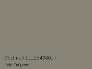 Decimal 1112543801 Color is a normal yellow color and the nearest color is Bitter #868974. Hex code #888477 and RGB value is rgb(136,132,119). In RGB color space, this color is composed of 53% red, 52% green, 47% blue, In CMYK color space, this color is composed of 0% cyan, 3% magenta, 13% yellow , 47% black , In HSL color space, this color has a hue angle of 46° , 7% saturation and 50% lightness.