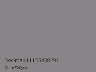 Decimal 1112543829 Color is a normal magenta color and the nearest color is Suva Gray #888387. Hex code #888487 and RGB value is rgb(136,132,135). In RGB color space, this color is composed of 53% red, 52% green, 53% blue, In CMYK color space, this color is composed of 0% cyan, 3% magenta, 1% yellow , 47% black , In HSL color space, this color has a hue angle of 315° , 2% saturation and 53% lightness.