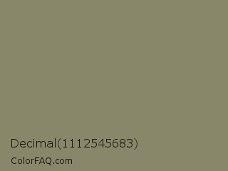 Decimal 1112545683 Color is a normal yellow color and the nearest color is Avocado Pulp #888d65. Hex code #888769 and RGB value is rgb(136,135,105). In RGB color space, this color is composed of 53% red, 53% green, 41% blue, In CMYK color space, this color is composed of 0% cyan, 1% magenta, 23% yellow , 47% black , In HSL color space, this color has a hue angle of 58° , 13% saturation and 47% lightness.