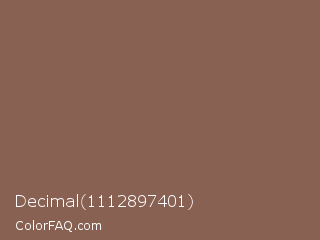 Decimal 1112897401 Color is a normal orange color and the nearest color is Dark Brown Tangelo #88654e. Hex code #896153 and RGB value is rgb(137,97,83). In RGB color space, this color is composed of 54% red, 38% green, 33% blue, In CMYK color space, this color is composed of 0% cyan, 29% magenta, 39% yellow , 46% black , In HSL color space, this color has a hue angle of 16° , 25% saturation and 43% lightness.
