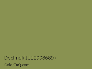 Decimal 1112998689 Color is a normal yellow color and the nearest color is Moss Green #8a9a5b. Hex code #899251 and RGB value is rgb(137,146,81). In RGB color space, this color is composed of 54% red, 57% green, 32% blue, In CMYK color space, this color is composed of 6% cyan, 0% magenta, 45% yellow , 43% black , In HSL color space, this color has a hue angle of 68° , 29% saturation and 45% lightness.