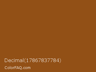 Decimal 17867837784 Color is a normal orange color and the nearest color is Rope #8e4d1e. Hex code #925016 and RGB value is rgb(146,80,22). In RGB color space, this color is composed of 57% red, 31% green, 9% blue, In CMYK color space, this color is composed of 0% cyan, 45% magenta, 85% yellow , 43% black , In HSL color space, this color has a hue angle of 28° , 74% saturation and 33% lightness.
