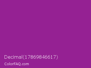 Decimal 17869846617 Color is a normal magenta color and the nearest color is Violet Eggplant #991199. Hex code #952193 and RGB value is rgb(149,33,147). In RGB color space, this color is composed of 58% red, 13% green, 58% blue, In CMYK color space, this color is composed of 0% cyan, 78% magenta, 1% yellow , 42% black , In HSL color space, this color has a hue angle of 301° , 64% saturation and 36% lightness.