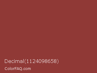 Decimal 1124098658 Color is a normal red color and the nearest color is Sanguine Brown #8d3d38. Hex code #903936 and RGB value is rgb(144,57,54). In RGB color space, this color is composed of 56% red, 22% green, 21% blue, In CMYK color space, this color is composed of 0% cyan, 60% magenta, 63% yellow , 44% black , In HSL color space, this color has a hue angle of 2° , 45% saturation and 39% lightness.
