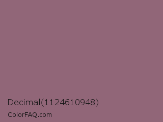 Decimal 1124610948 Color is a normal rose color and the nearest color is Opium #8e6f70. Hex code #916678 and RGB value is rgb(145,102,120). In RGB color space, this color is composed of 57% red, 40% green, 47% blue, In CMYK color space, this color is composed of 0% cyan, 30% magenta, 17% yellow , 43% black , In HSL color space, this color has a hue angle of 335° , 17% saturation and 48% lightness.